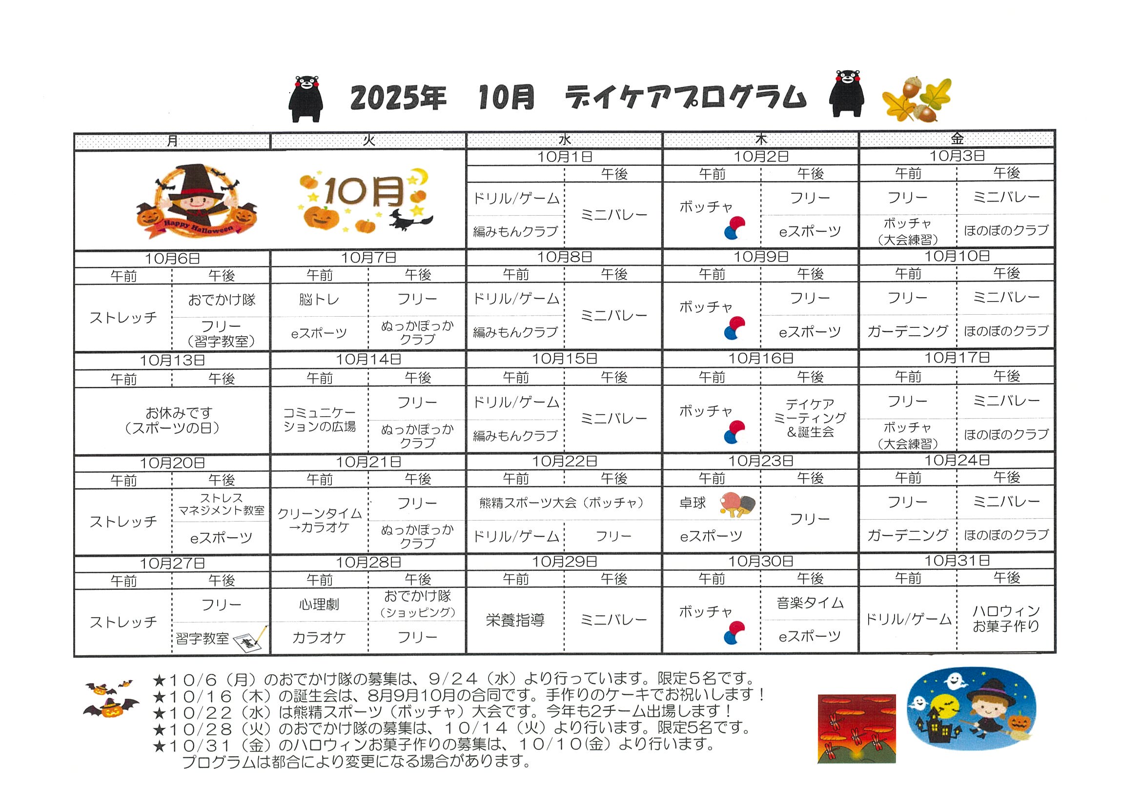★ 詳しくは、デイケアスタッフまでお気軽にお尋ね下さい!!