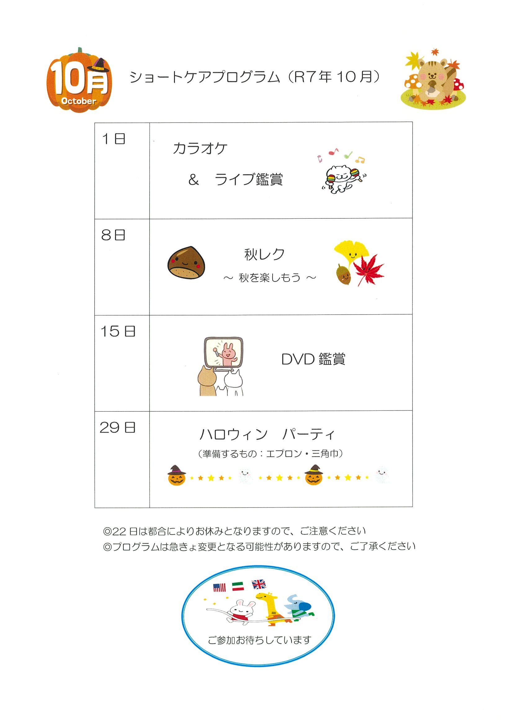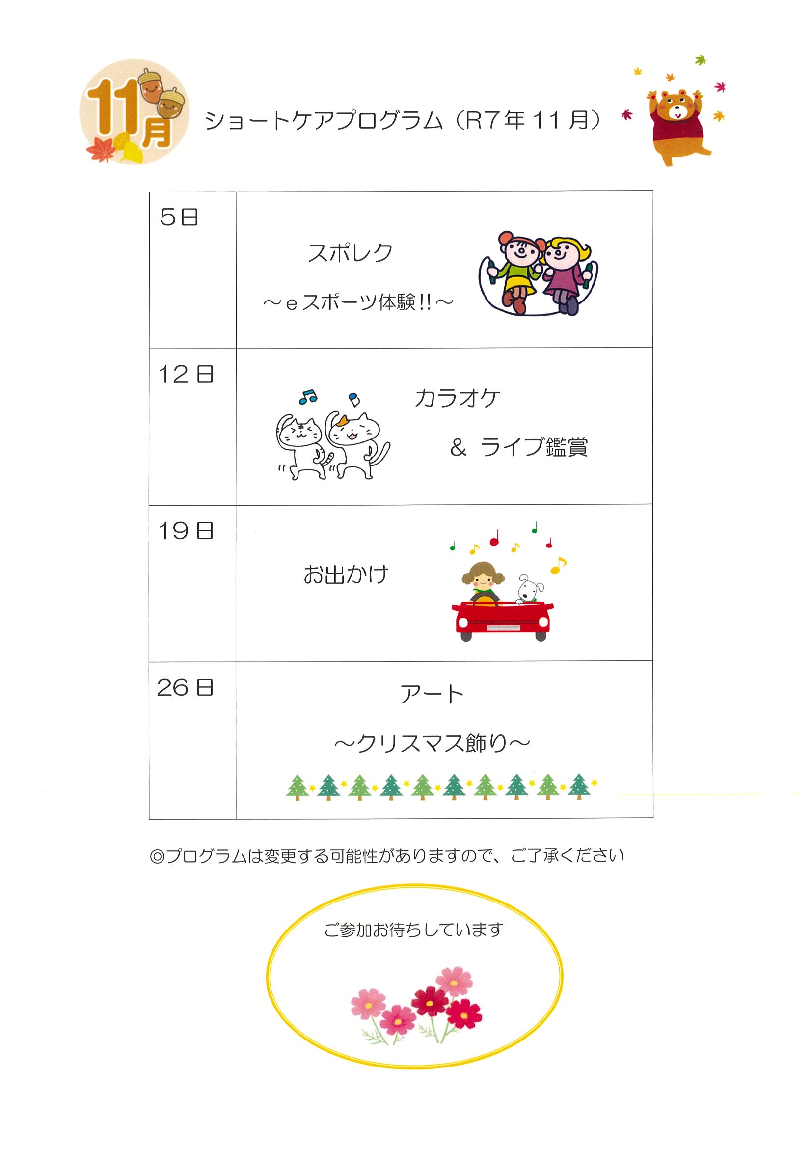 ※ご不明な点は、ご遠慮なくショートケア担当スタッフまでお尋ねください